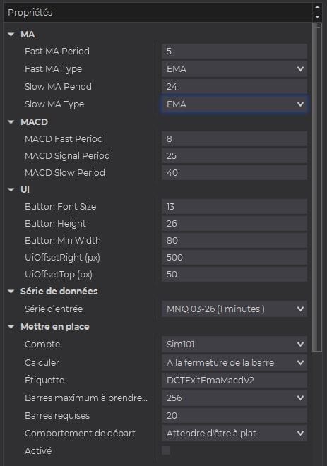 Vous choisissez de sortir soit sur le croisement de Moyennes Mobiles ou sur un croisement de la MACD