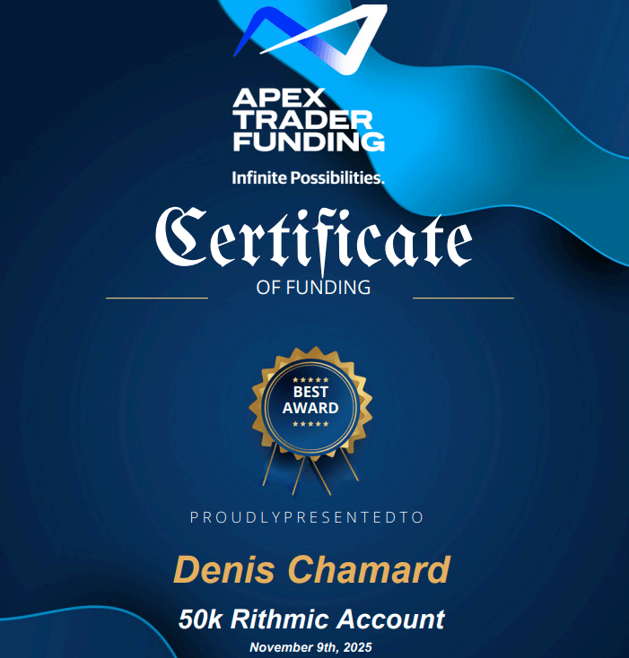 Par ailleurs, dès 2020, j'ai commencé à expérimenter les sociétés qui proposent des comptes financés, que l'on appelle des Propfirms. J'ai réussi plusieurs challenges (Leeloo, FTMO, E8Funding, APEX, Phidias, Bulenox, Darwinex ..) et j'ai ainsi eu la possibilité d'obtenir plusieurs comptes financés.
